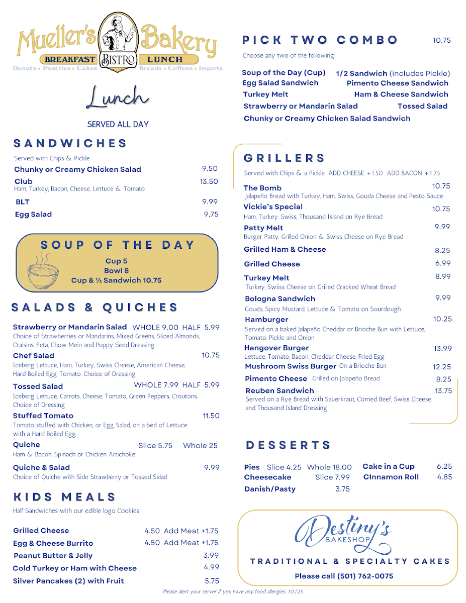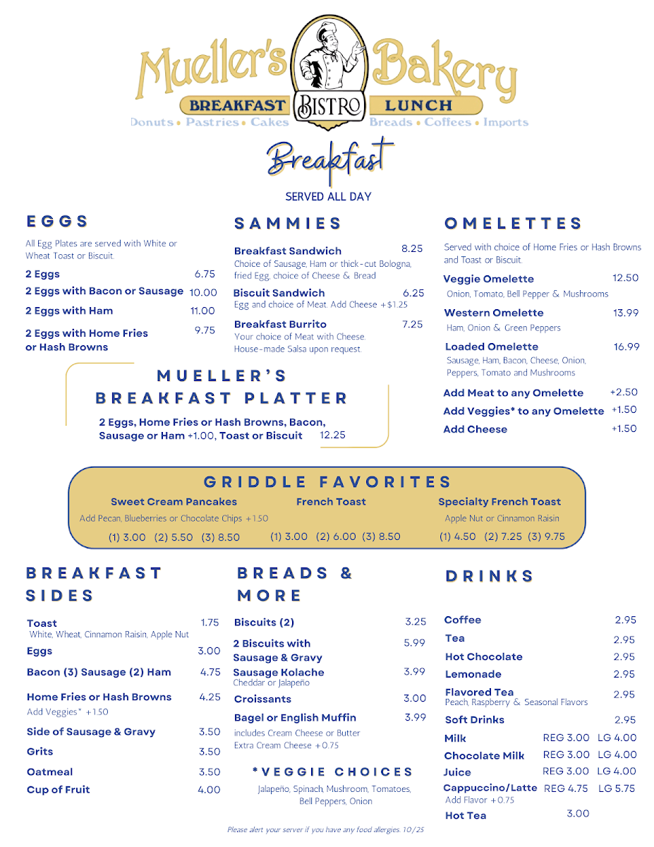 Mueller's Bistro & Bakery Menu