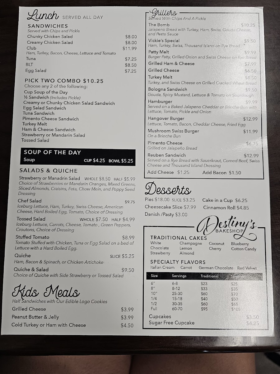 Overall, the menu invites you to enjoy familiar, comforting meals in a setting that encourages connection and relaxation—whether it’s a quiet breakfast, a weekend lunch with friends, or a casual stop for a fresh pastry and coffee.